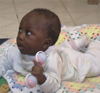 A retired physical therapist from the US visited the orphanage and began to work with some of the babies, including Ricky. The therapist introduced simple exercises and play routines, and the results were nothing short of miraculous. Ricky gained head control, trunk control, gross grasp and a wonderful smile complete with a heart-melting giggle.